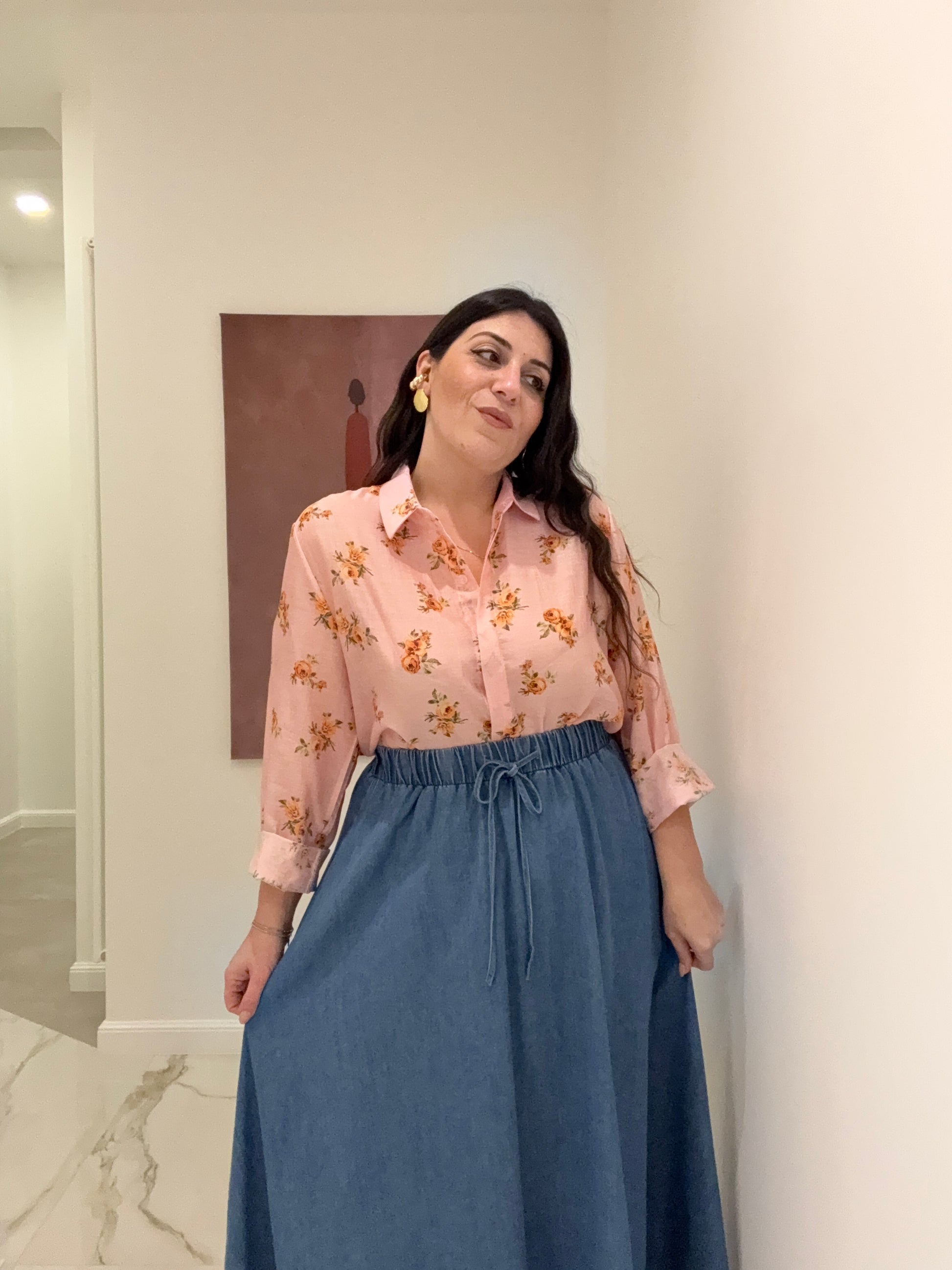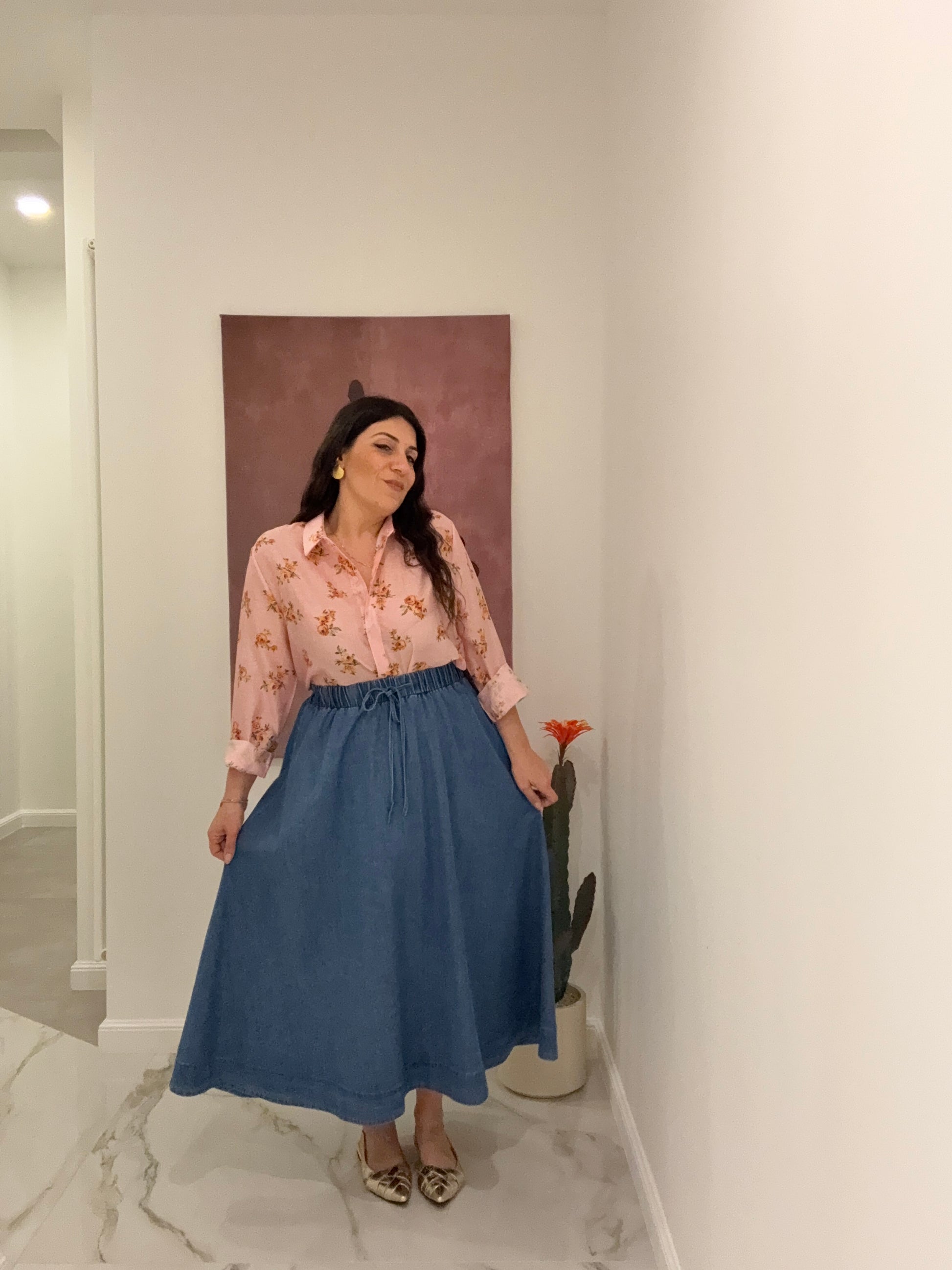 GOne midi mezza ruota Denim con bustino elastico