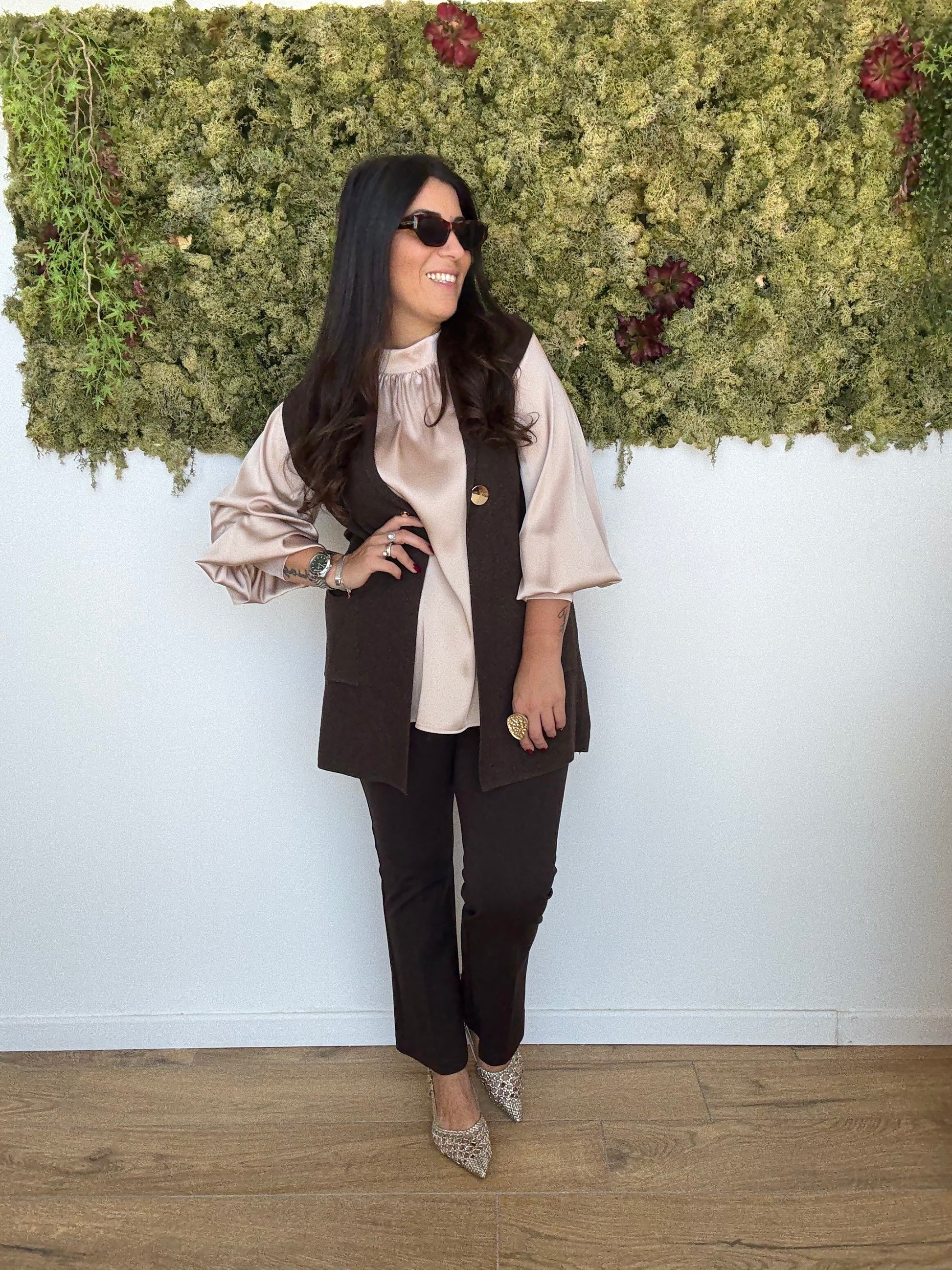 In foto, indosso la taglia 46.