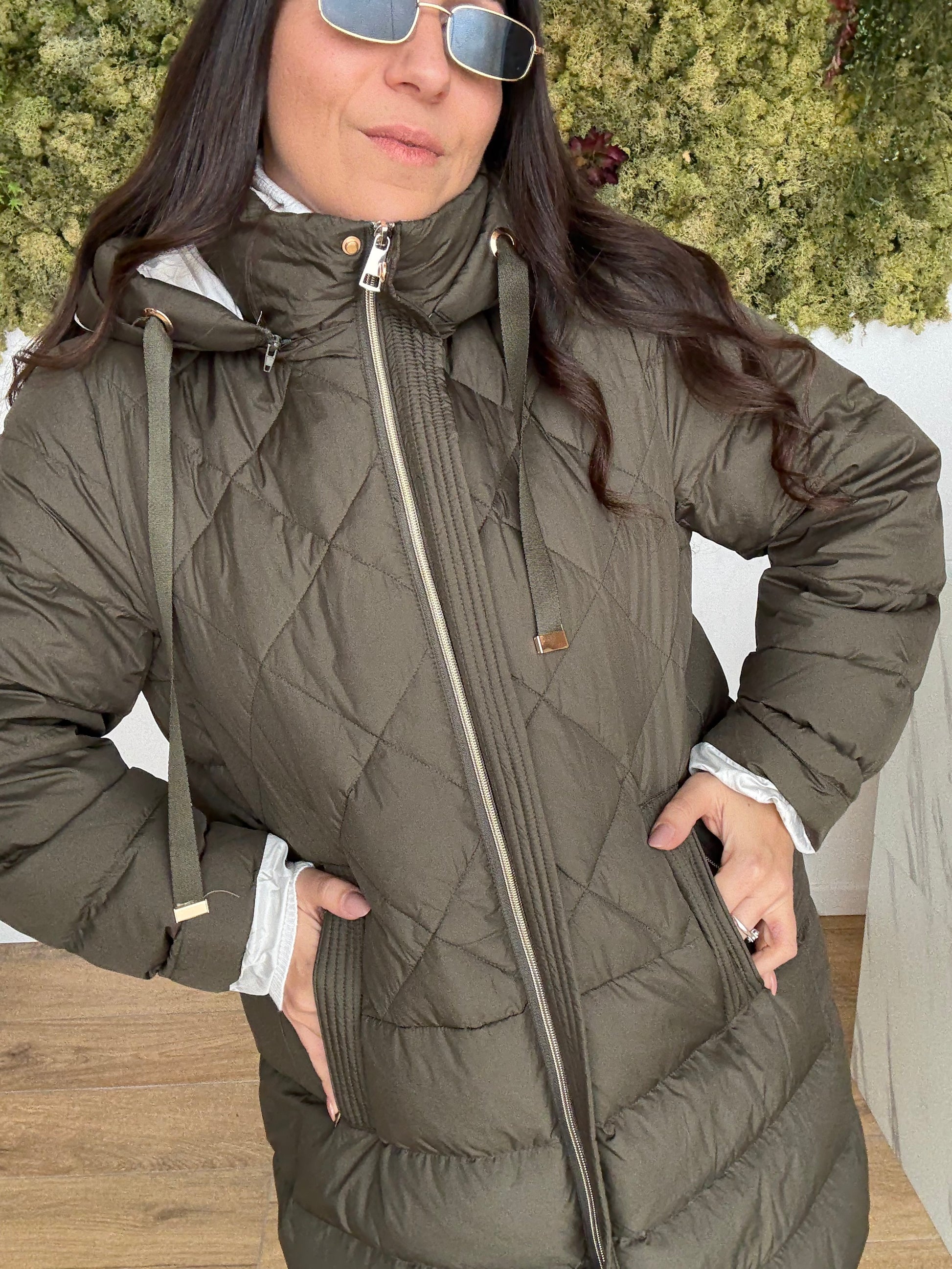 Piumino lungo modello over con cappuccio taglia fino alla 6XL
