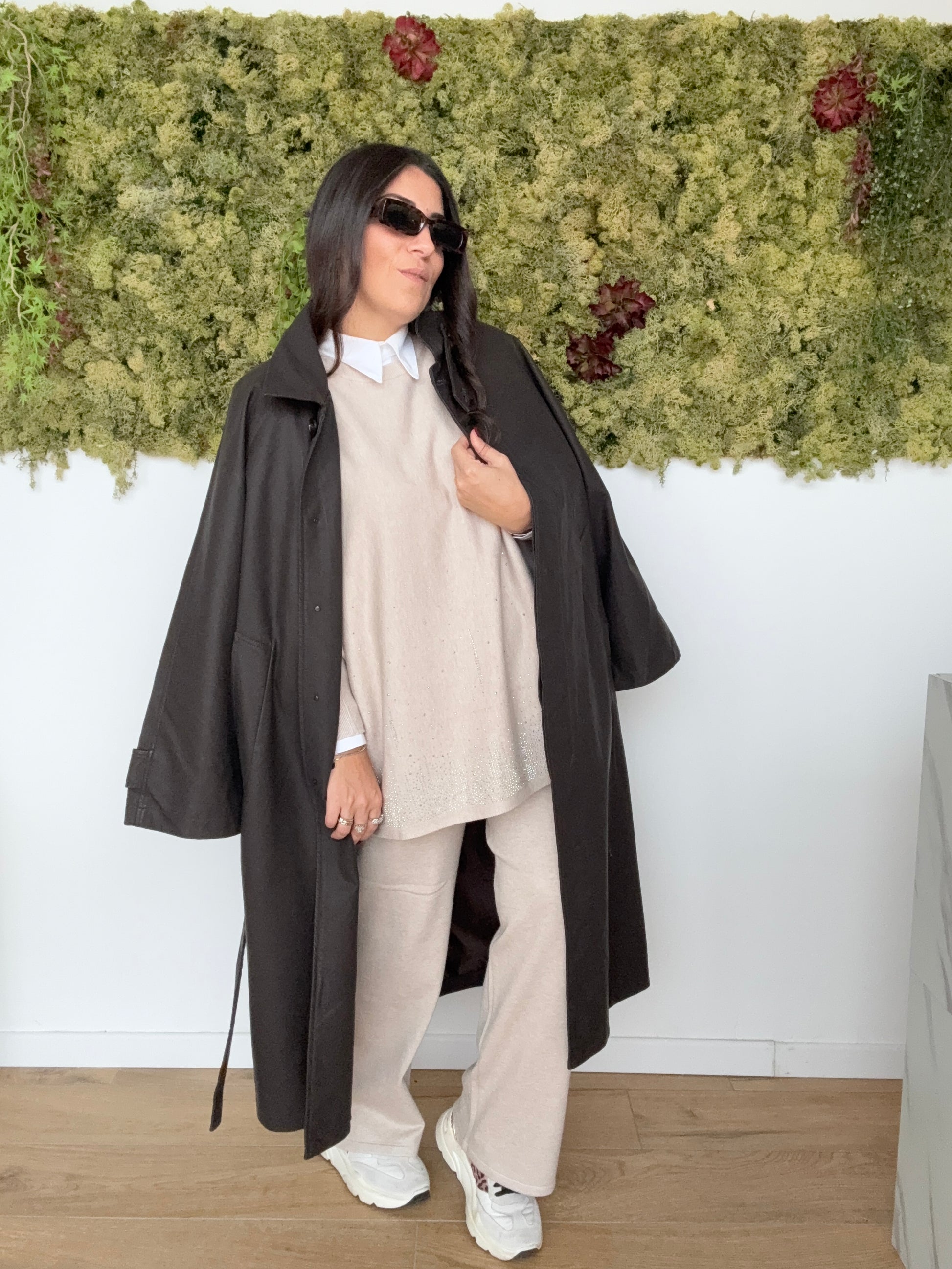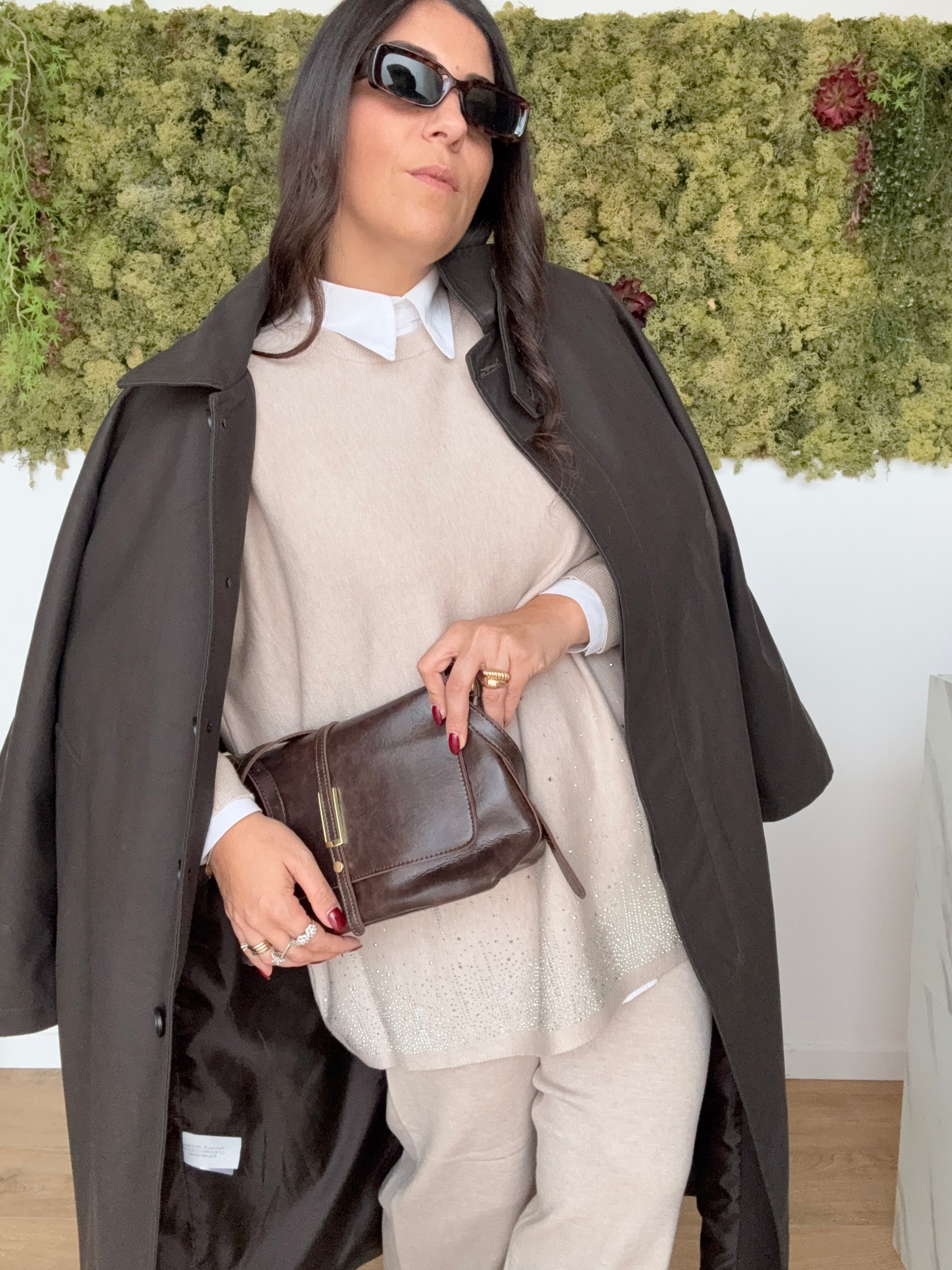 Set coordinato in viscosa calda e morbida con applicazioni strass sul magliettone