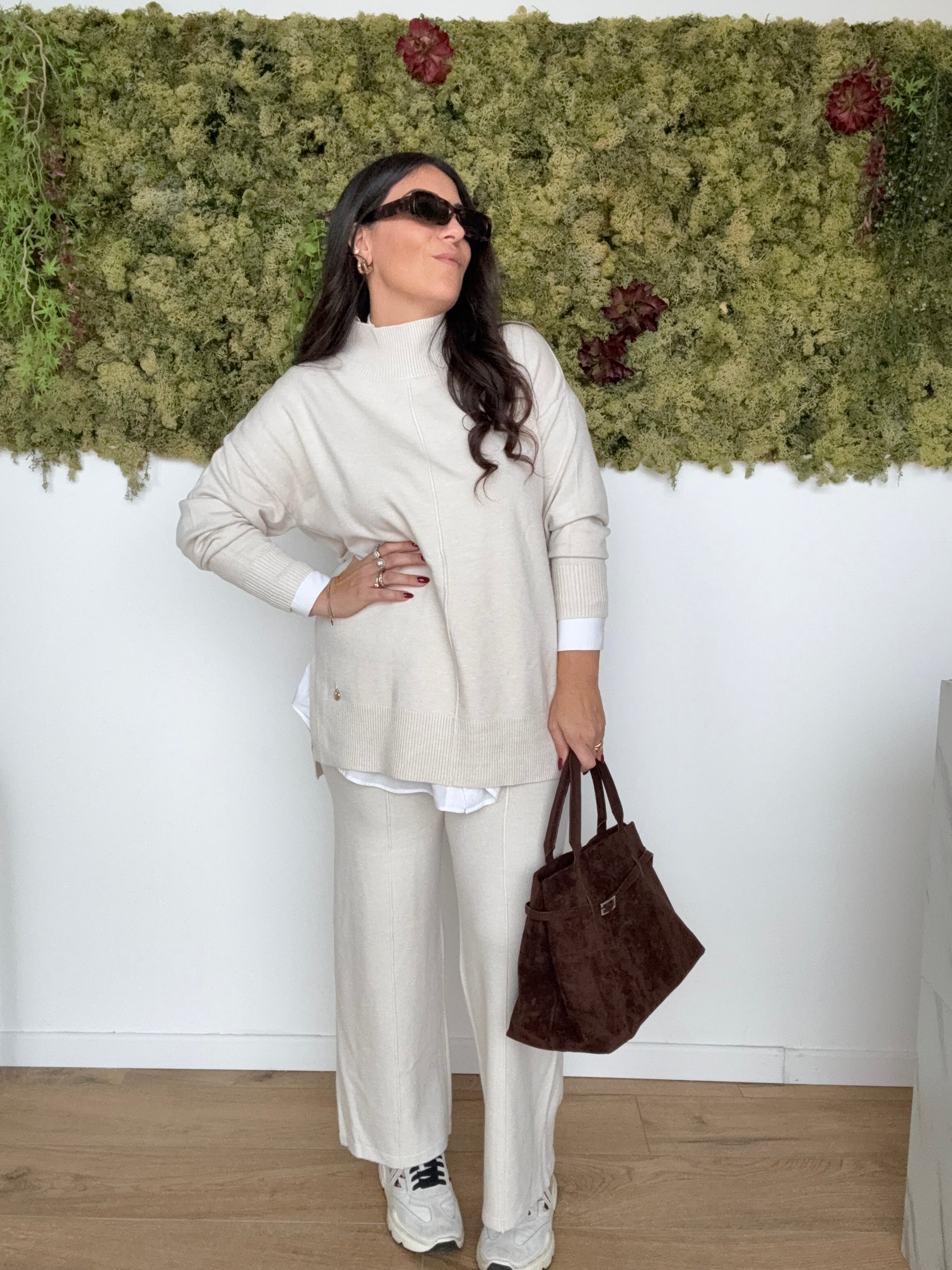 Set coordinato in viscosa calda con magliettone collo alto