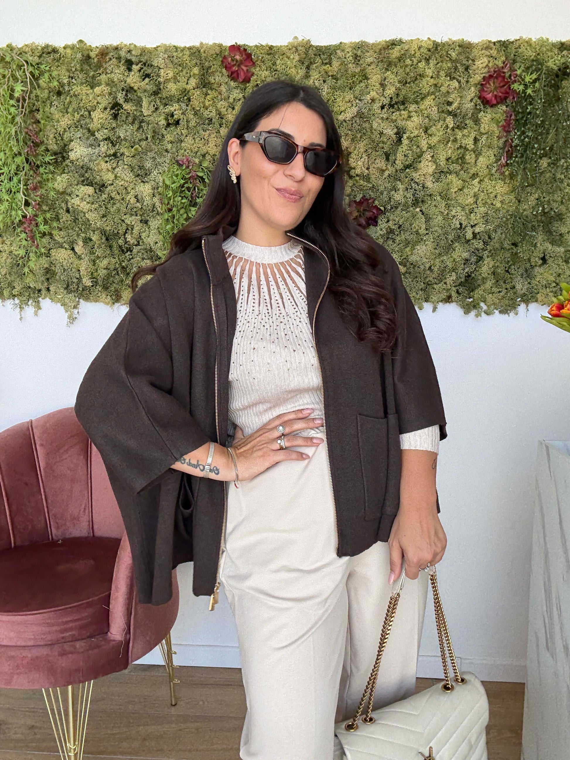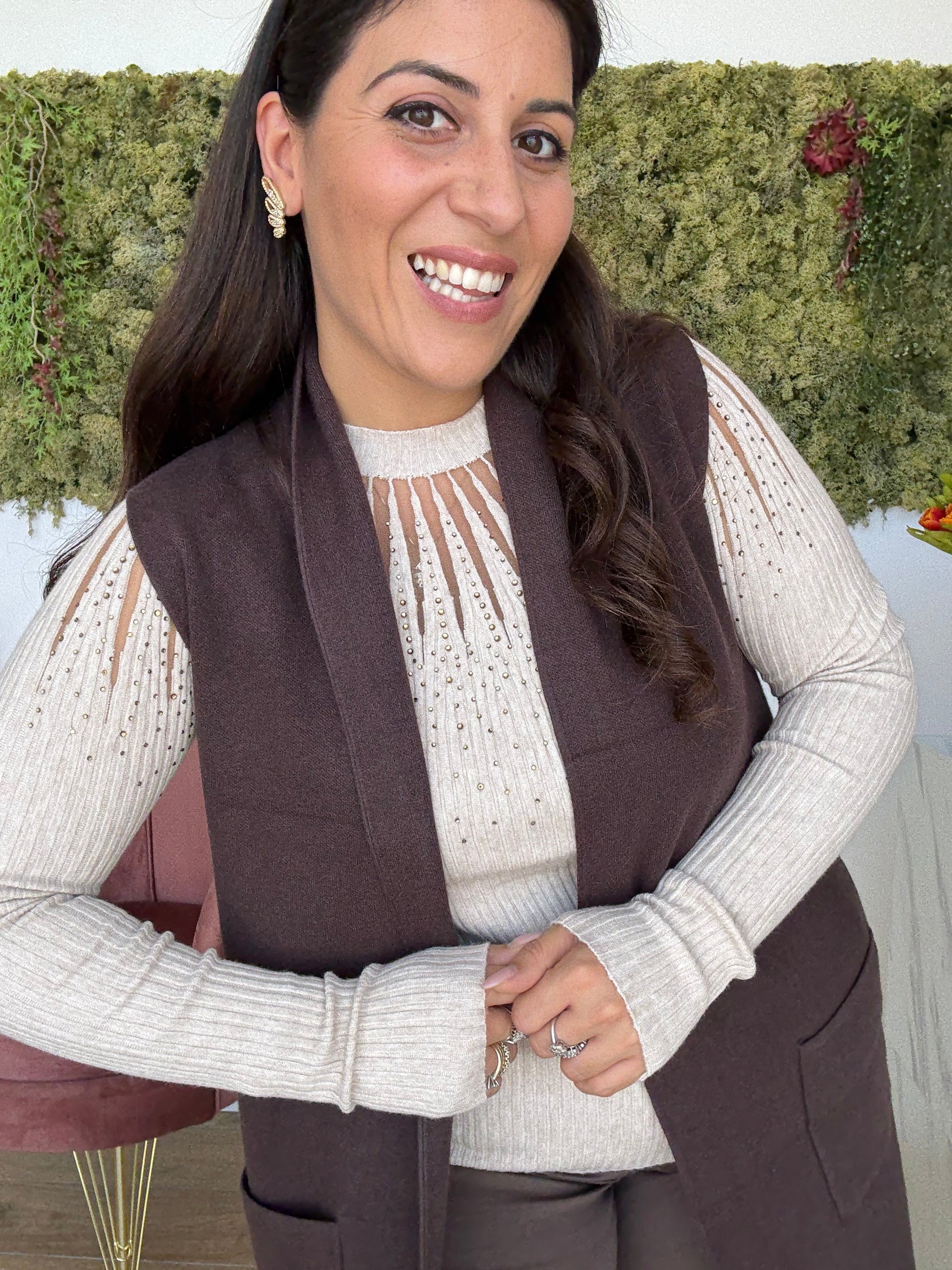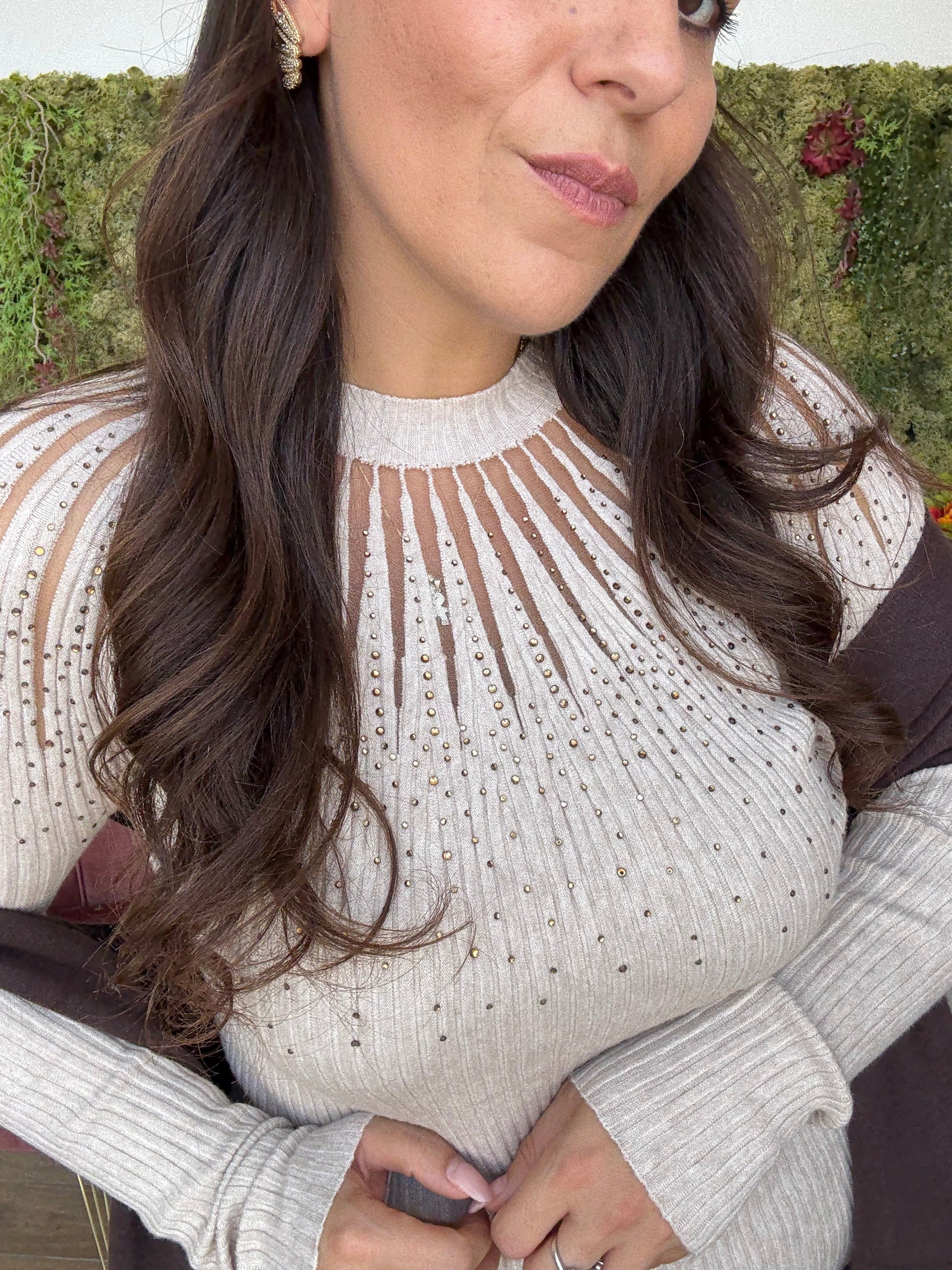 Sottogiacca in maglia calda con lavorazione ricamo e strass