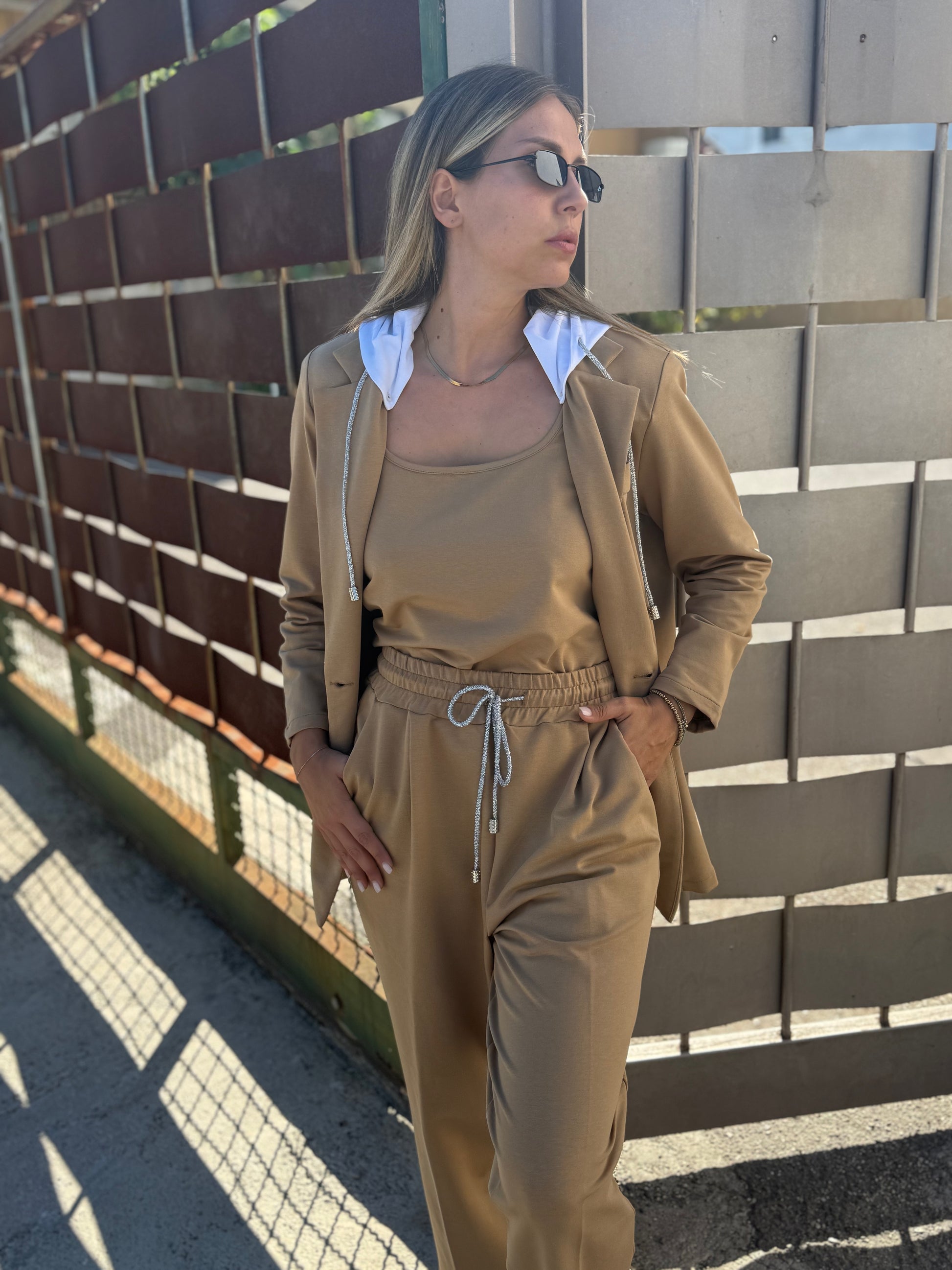 Top spalla larga in cotone felpa lunghezza all’ombelico. Perfetta per poterla portare all’interno del pantalone senza la possibilità che possa uscire.